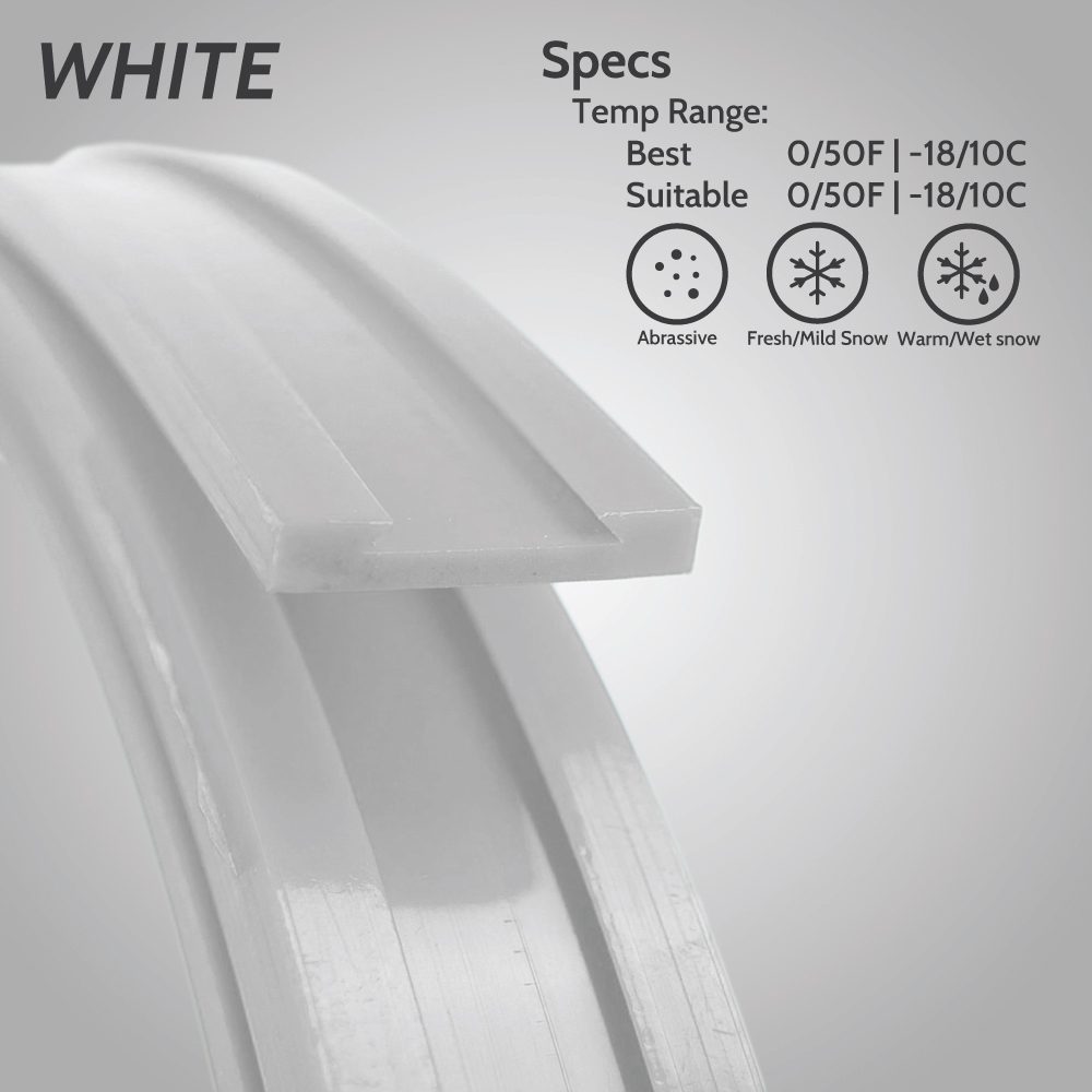 WHITE: The WHITE FCP Runner Plastic is made of a virgin UHMW plastic that is the most versatile and widely used plastic. It offers excellent glide from 0 degrees F to 50 degrees F (-18 degrees C to 10 degrees C).