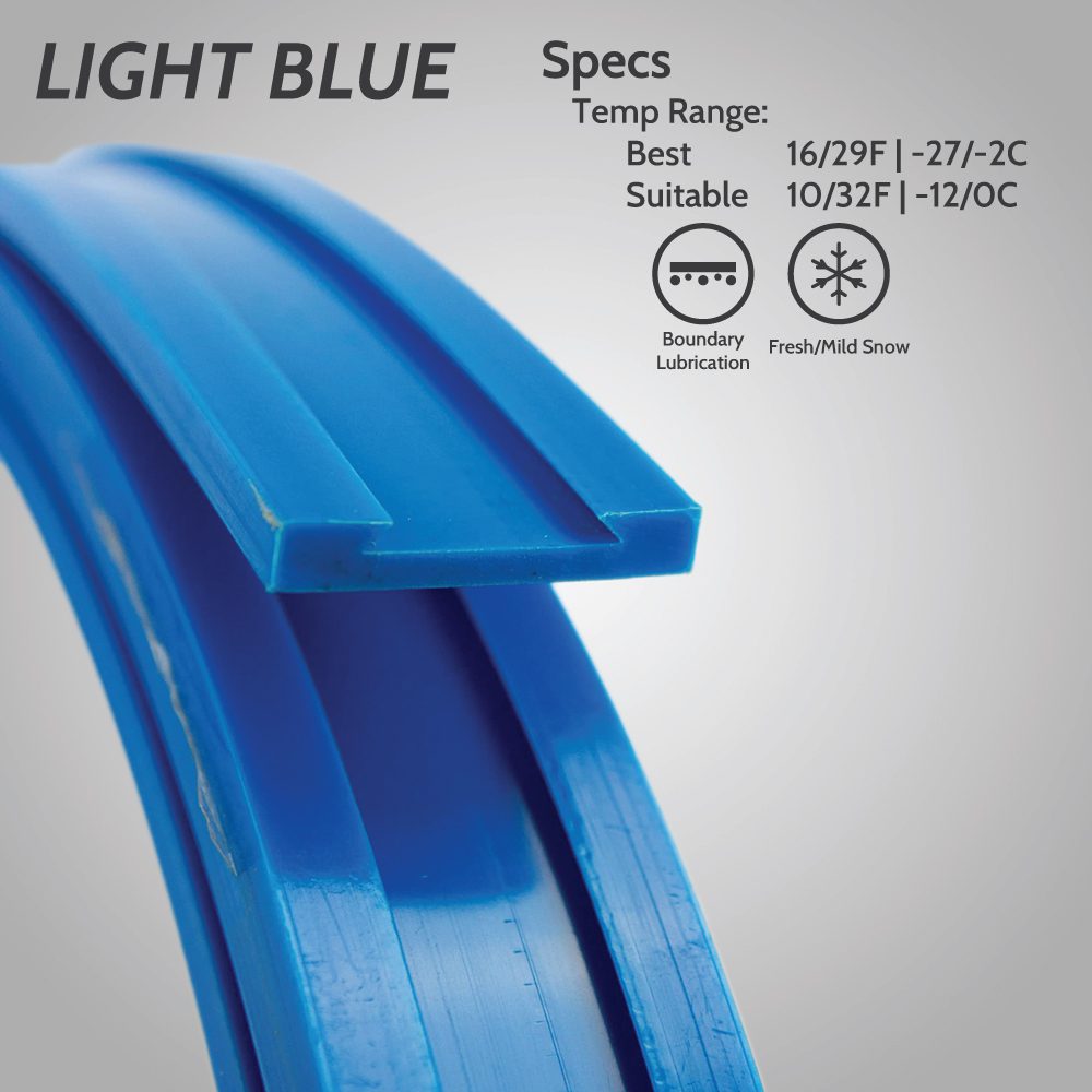LIGHT BLUE: The LIGHT BLUE FCP Runner Plastic is one of our two wax impregnated plastics. It is made of the same product used in the ski and snowboard industries worldwide. We add SWIX medium range temperature wax to add lubrication with maximum glide between 16 degrees F (-8 degrees C) and 29 degrees F (-2 degrees C).
